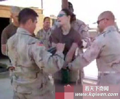 驻伊美军士兵控制住女兵身体。